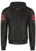 Elevate your style with our sophisticated men's Black Leather Hooded Bomber Jacket, a versatile piece that effortlessly combines style and functionality. Crafted from premium black leather and featuring black YKK zippers, this jacket is a timeless addition to your wardrobe, suitable for any occasion.