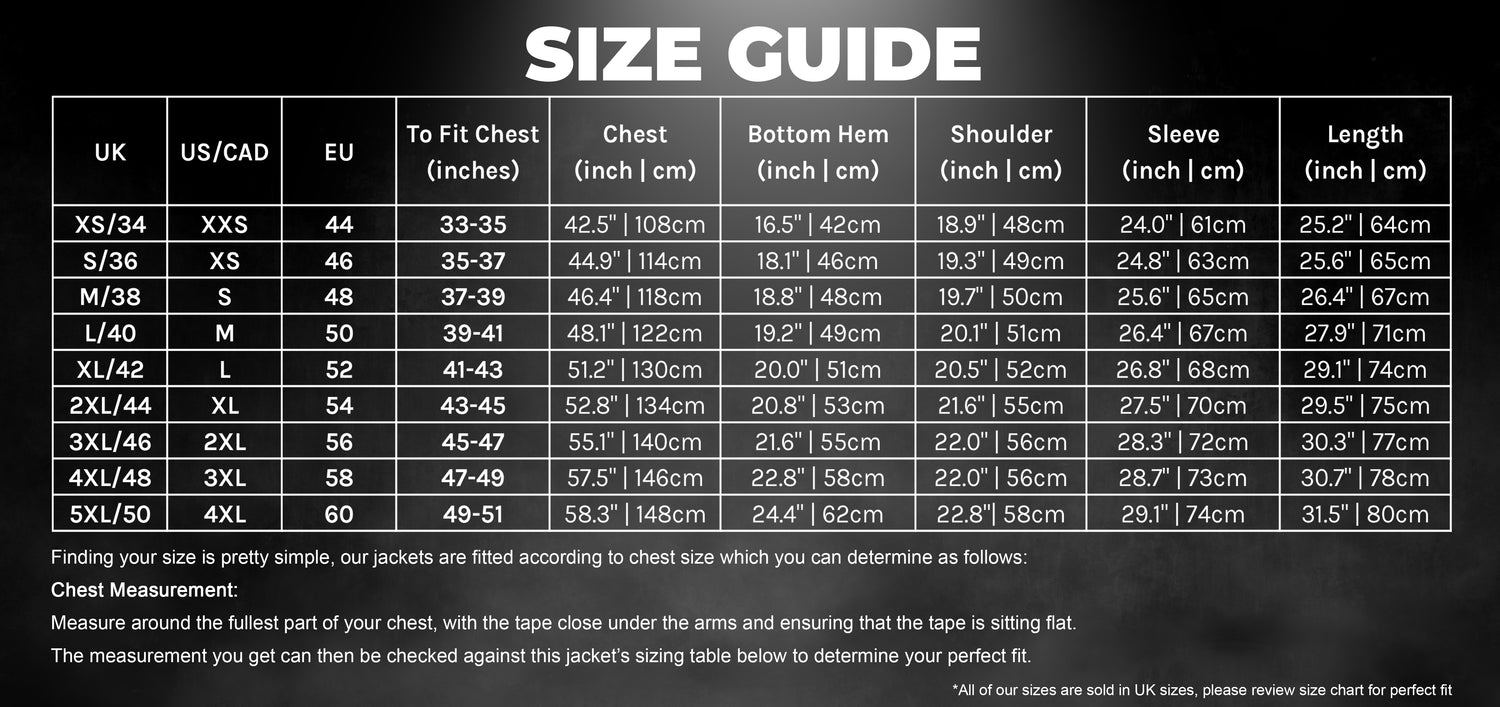 Finding your size is pretty simple, our jackets are fitted according to chest size which you can determine as follows: