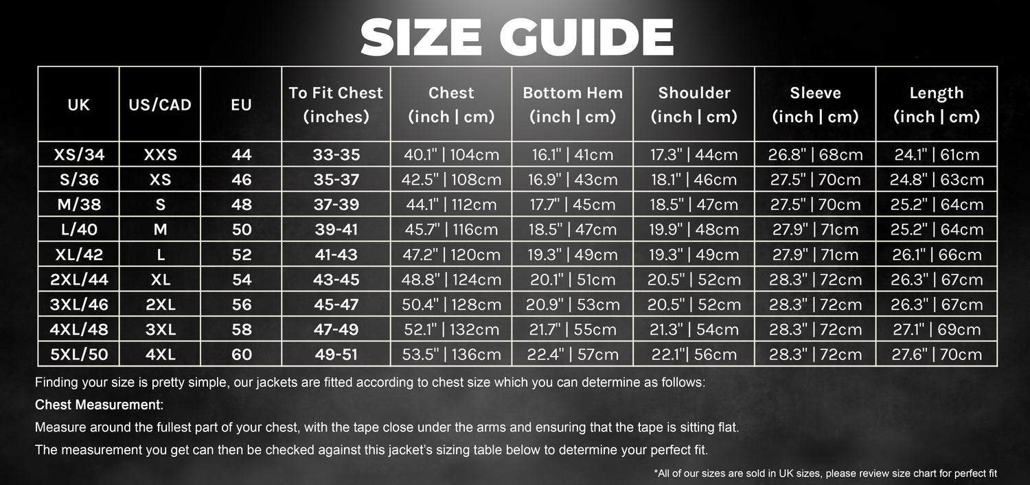 Finding your size is pretty simple, our jackets are fitted according to chest size which you can determine as follows: