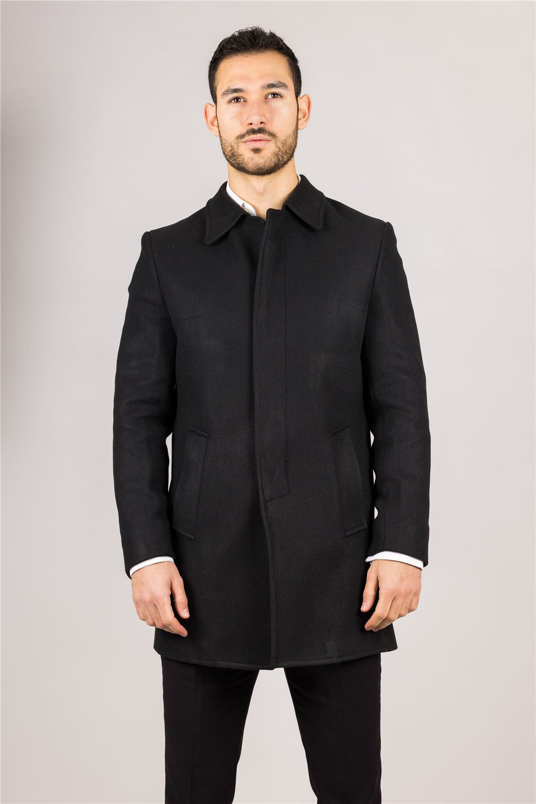 Men's Wool Blend Classic Collar Black Overcoat- Regular price