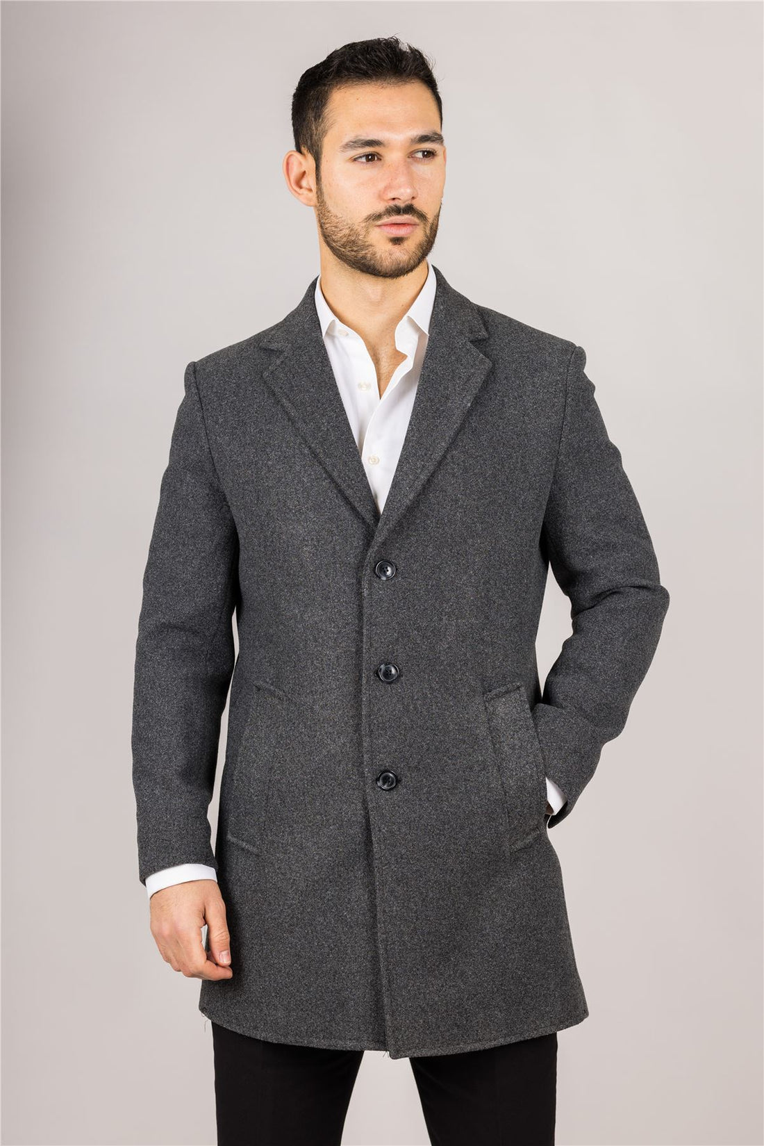 Men's Long Charcoal Wool Slim Fit Overcoat