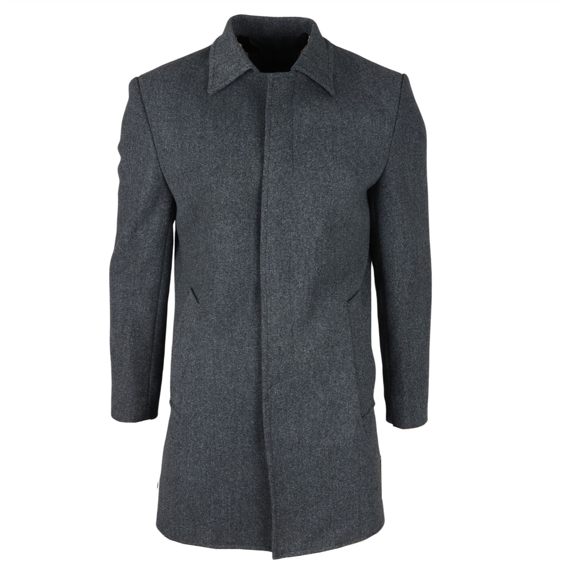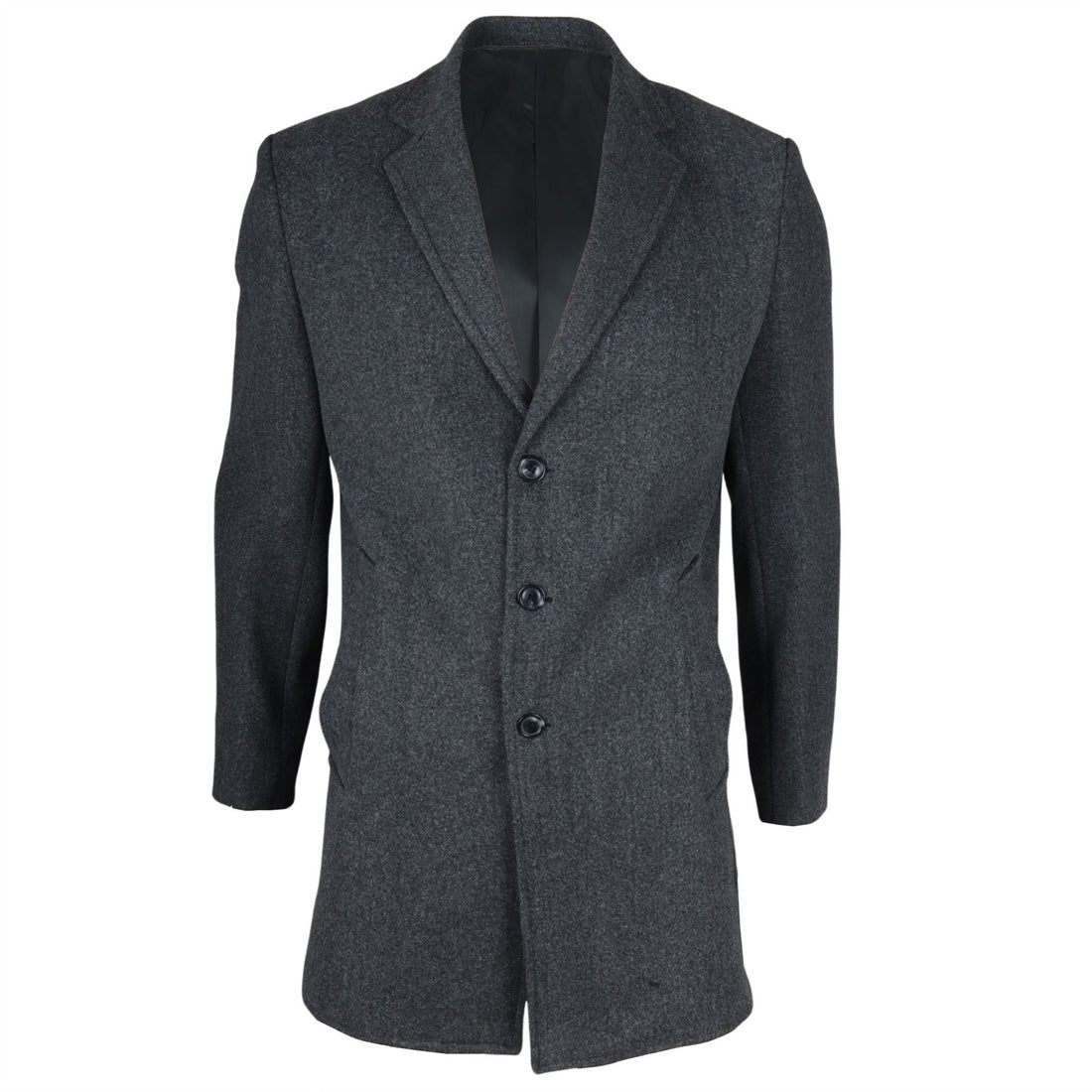 Mens 3/4 Long Black Wool Coat Crombie Overcoat Jacket Peaky Blinders Slim Fit