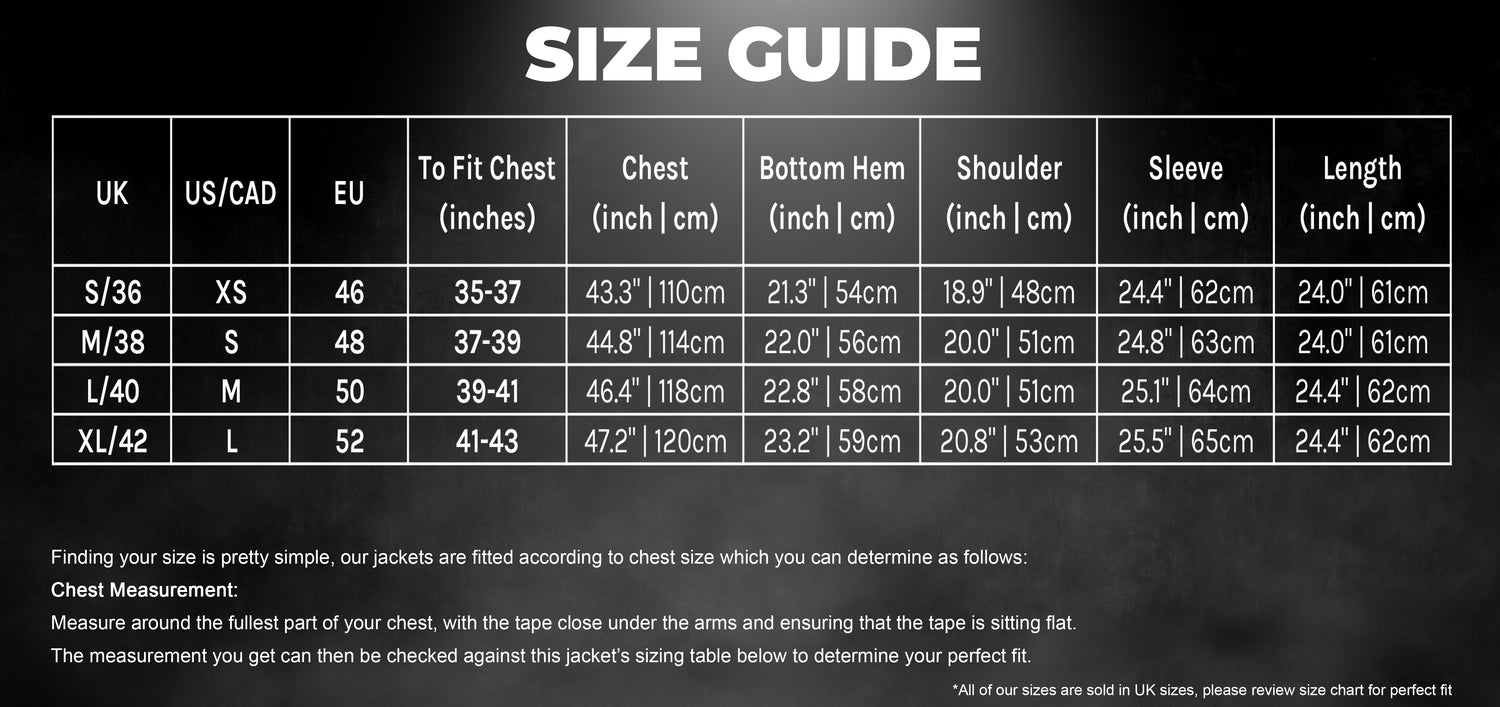 Finding your size is pretty simple, our jackets are fitted according to chest size which you can determine as follows: