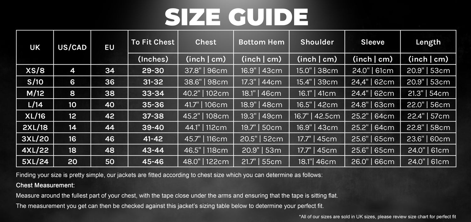 To Fit Chest | Chest | Bottom Hem | Shoulder | Sleeve | Length |