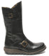 Fly London Womens Black MES 2 Wedge Heel Buckle Mid-Calf Leather Zip Platform Boots