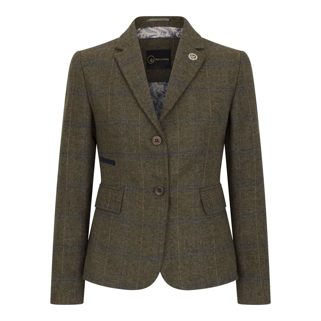 Women's Olive 2 Piece Set Tweed Blazer Waistcoat in Herringbone Check- Regular price
