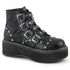 Alternative in its style, showcase your personality with these Demonia Emily 315 black gothic ankle boots. The black vegan leather uppers come with heart-shaped studs along the seams and 4 studded straps with metallic buckles. Additional detailing like the metal O-ring and front laces completes this boots stylish, contemporary look. With a comfortable 2" rubber platform sole and inside zip closure, this boot does not compromise comfort and practicality for style. Perfect for a casual evening or when you are looking to make a statement, your wardrobe is incomplete without these Demonia ankle boots.