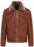Crafted out of premium full grain nappa leather, this style is a reinterpretation of the trucker which emerged as a popular jacket style in the 1960s. The jacket features a traditional shirt style collar which is an iconic trademark of the trucker style and is made of sheepskin and featured in cream for a nice contrast against our timber and colourways. Other reimaginations that this jacket features are straight flap pockets directly under two zip pockets on the breast for extra storage and a button fastened fly flap to maintain a slick look on the jacket front. This is a slim fitting piece that when paired with some jeans and boots makes for a great timeless outfit.