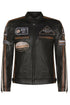 Introducing our Vintage Racing Badges Jacket, a true delight for racing enthusiasts and style aficionados alike. Crafted from our premium ultra-soft nappa leather, this jacket combines classic biker aesthetics with vintage racing flair.