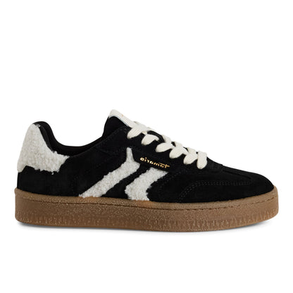 Tamaris Womens Black White Fur Suede Leather Fashion Lace Up Sneakers