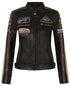 Womens Biker Racing Badges Leather Jacket-Eastleigh