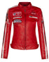 Womens Biker Racing Badges Leather Jacket-Eastleigh
