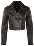 Indulge in sleek luxury with this cropped Brando-style leather jacket. Crafted from ultra-soft lamb nappa leather and lined with premium satin, it blends timeless biker attitude with modern elegance. Sophisticated detailing and a flattering silhouette make it a versatile essential for every fashion-forward wardrobe.
